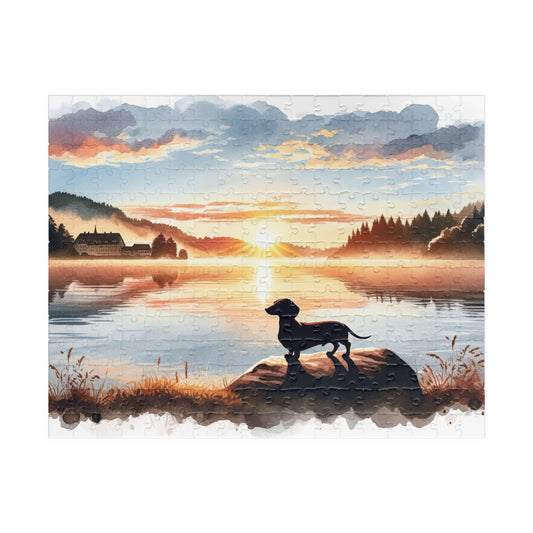 Dawn's Early Light - Dachshund Lake View Jigsaw Puzzle - Available in Multiple Sizes 110, 252, 520, 1014-piece
